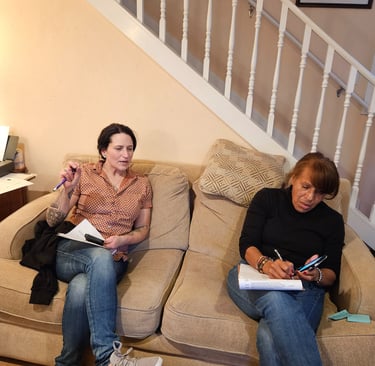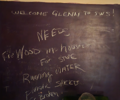 At the community kitchen, a warm welcome sign for Glenn & Myyah