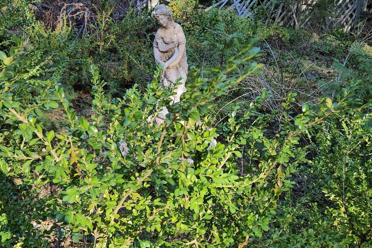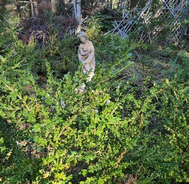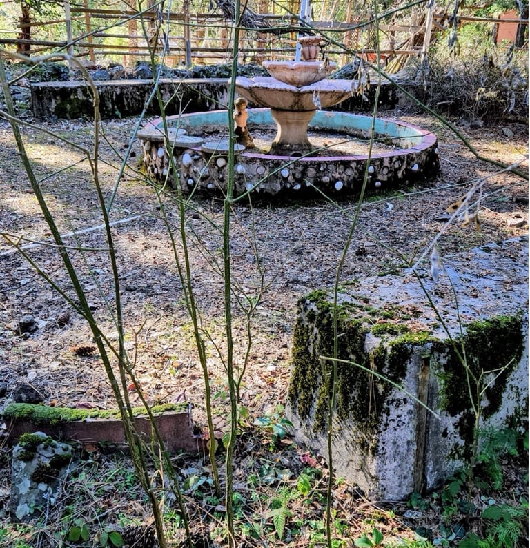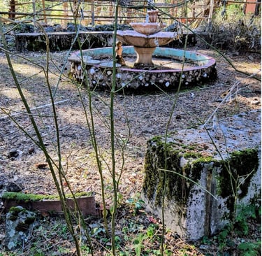 Water fountain and garden need some care, painting, and upkeep.