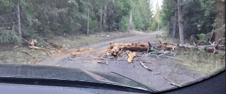 Down and sliding trees common, drivers must be prepared by having chainswords in their vehicles and emergency kits.