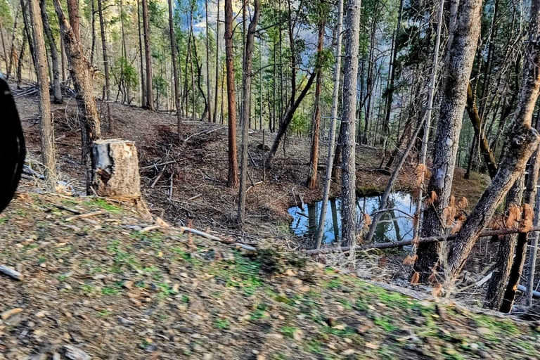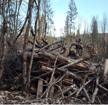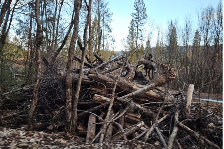 What loggers leave behind to burn, and what SWS helps to prevent. Cut into firewood, a viable source of income for SWS—but we need a pick-up truck.