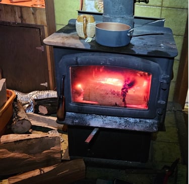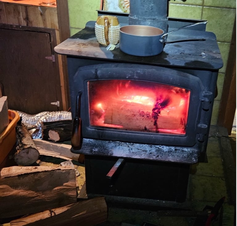 True off-the-grid: want a cup of tea during those cold winter days? Well, load some wood, light it, and wallah, hot water for tea awaits you.
